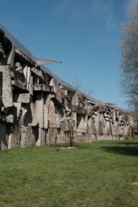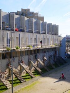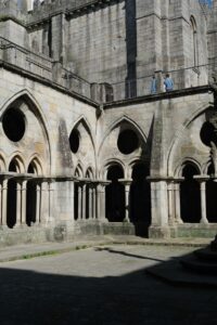 サンティアゴ・デ・コンポステーラは、ロマネスク・ゴシック様式の大聖堂や修道院群が都市骨格を形成する巡礼都市である。現代建築の代表例であるピーター・アイゼンマンの「ガリシア文化都市」は、幾何学的な配置と抽象的形態によって歴史的文脈に挑戦しつつ、都市空間の再編を行っている。石造や石畳の歴史的素材に対し、コンクリートやガラスを用いた現代建築は、視覚的コントラストと空間的緊張を生むと同時に、巡礼路や広場の公共性を補完する機能を持つ。この介入は、過去の建築に対する「尊重」と「批判的再解釈」を両立させるデザイン思想の典型であり、歴史都市における現代建築の可能性を示している。