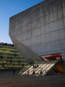 ポルトでは、アルヴァロ・シザやソウト・デ・モウラの作品が、伝統的石造建築と現代的素材の対話を通じて都市に新たな層を形成する。シザは住宅や公共施設において、石材や白漆喰、木材といった地域的素材を継承しつつ、光の導入や空間の連続性によって現代的体験を提供する。ソウト・デ・モウラの建築では、スケールと質感の対比を通じて歴史的街並みに緊張と調和をもたらし、都市の物語性を拡張する。また、レム・コールハース設計の「カサ・ダ・ムジカ」は、曲面と直線を組み合わせたダイナミックな形態とガラスファサードによって都市景観に斬新なアクセントを加え、大西洋都市の開放性と国際性を建築言語として可視化している。